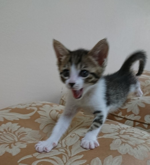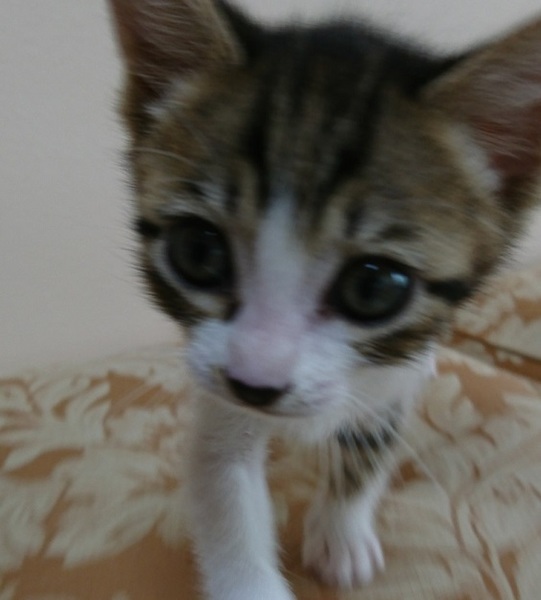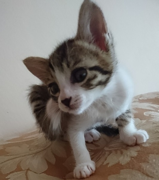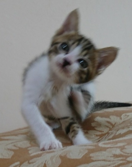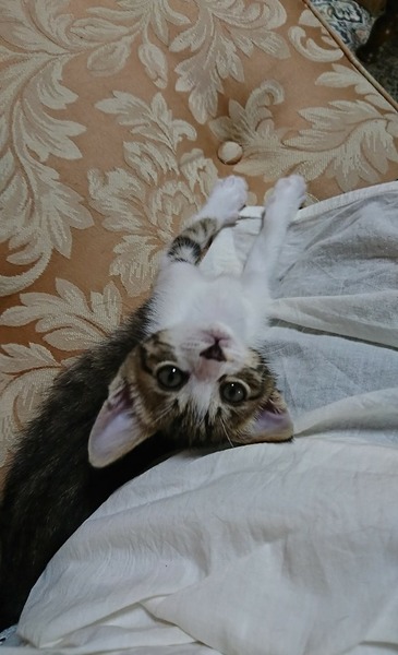 | 特徴(性格など) | キジ白・鼻に黒模様・しっぽ長め 元気で甘えん坊です。 他の猫や小型犬にも臆しません。 離乳移行期でベビーフードの缶詰とミルク、ふやかした仔猫用のドライフードを食べています。 ウンチ、オシッコの排泄は猫トイレで失敗なくできています。 |