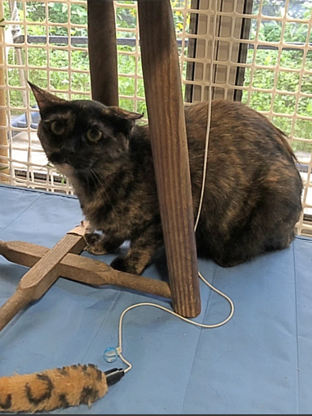 | 特徴(性格など) | 名前/むーちゃん サビ柄の女の子です。 最初は警戒心がありますが、おもちゃで遊ぶことが好きなため少しずつ距離を縮めてあげてください。 猫が好きなため先住猫がいるご家庭か、仲の良い猫と迎えていただくとむーちゃんも馴染みやすいと思います |