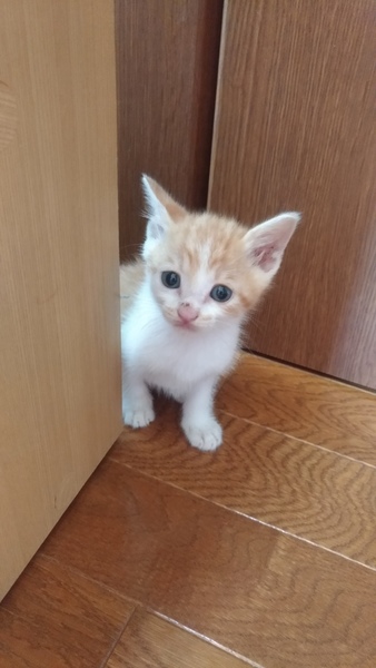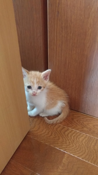 | 里親募集する理由 | 原付バイクの中に入り込み出れなくなり保護しました。健康状態は問題ありませんが、ノミがついていたので駆虫しています。 猫の飼育経験はありますが、先住うさぎがいるため飼育困難です。可愛がっていただける里親さんを募集しています。子猫の為、ワクチンや去勢手術は未です。 |