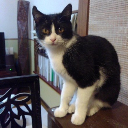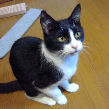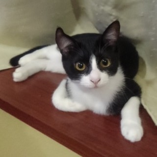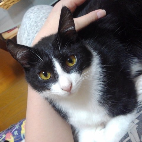 | 特徴(性格など) | 仮名:ドゥちゃん 性別:メス 毛色:白黒、ハチワレ&タキシード 瞳の色:ヘーゼル。写真ではうまく写りませんが、これまでに見たことがない、とても神秘的でキレイな色合いです。 尻尾:長くてまっすぐ 性格・特徴:右耳がアメリカンカールのように反り返っているのがチャームポイントです。 生まれつきかもしれないですし、カラスか何かに噛まれて変形した可能性もあります。 ほっぺのところの黒い模様がフリルのような形になっているのがかわいいです。 最初は怖がりですが、おひざ抱っこで甘えるのが大好き。 時間をかけて信頼関係ができれば、ベタベタの甘えん坊になると思います。 トイレ(鉱物系)のしつけ済み。 大人猫に対してもフレンドリーです。 先住猫のいるお家か、2匹ペアでの譲渡をお願いします。 |