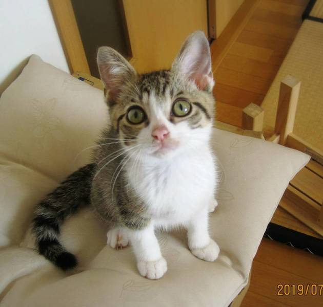 | 性別 | 猫 ♂ | 年齢 | 推定約3ヶ月 (2019/08/02 掲載時 ) |