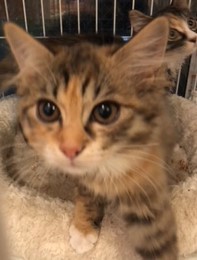 | 特徴(性格など) | 名前 マールちゃん ( 担当 五十嵐 ) 年齢 推定 生後3ヶ月 性別 メス 毛色 毛長の三毛猫 甘え上手でお腹を出しては可愛さをアピールします♡ 玩具も他の猫の事も大好きです♬ |