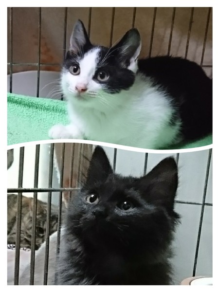 | 特徴(性格など) | ★兄弟①長毛、黒猫の女の子。 毛がフサフサでとってもかわいいです♪ ★兄弟猫②白黒ハチワレの男の子。 くりっとした目がかわいいハチワレくんです♪ 2匹とも初めは人見知りをして怖がるかもしれませんが、まだ子猫なので新しい環境に慣れるのは早いと思います。 とにかくいつも一緒にくっついていてとっても仲が良い兄弟です♪ 2匹一緒に、新しいお家探してます。 |