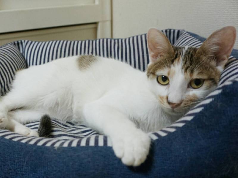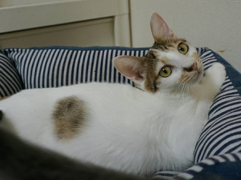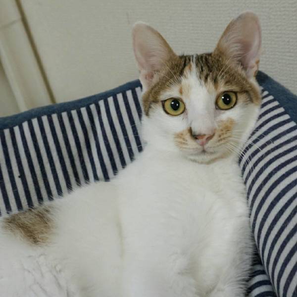 | 特徴(性格など) | 生年月日:2019年3月31日 毛色:白三毛 しっぽ:長くてまっすぐ 個性的な模様の可愛い女の子。 クールなツンデレさんも多い三毛猫ですが、穏やかでいつでもご機嫌。 目が合うとゴロゴロ♪がスタート、撫でられるともう最高!と言わんばかりの大音量に(〃艸〃) 猫じゃらしやボール遊びも大好きですが、スプリンタータイプで脱落も早く、早々にお気に入りのベッドへ・・。 遊ぶより撫でられながらまったりするのが好きな、おばあちゃんのような子猫です。 預かり宅の飼い猫のことも好きで、自らスリスリ~ 先住さんがいるご家庭でも良好な関係を築けるはずです。 ☆不妊去勢手術済 ☆ワクチン2回済 ☆ノミダニ取り済 ☆駆虫済 ☆マイクロチップ挿入済 ☆トイレしつけ済 ☆ウイルス検査 エイズ 陰性、白血病 陰性 |