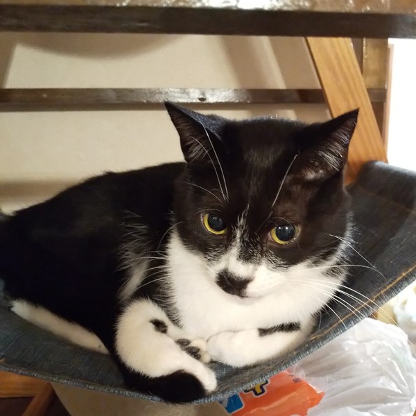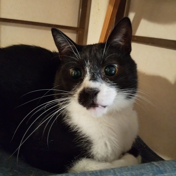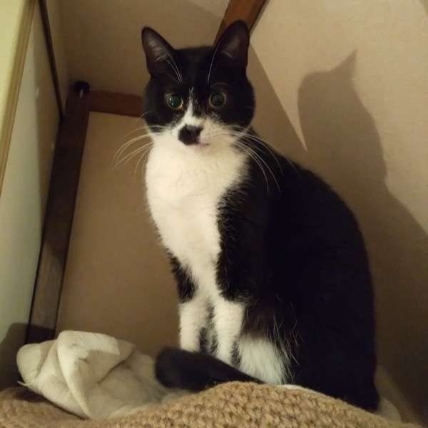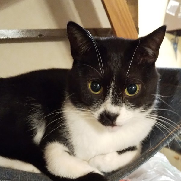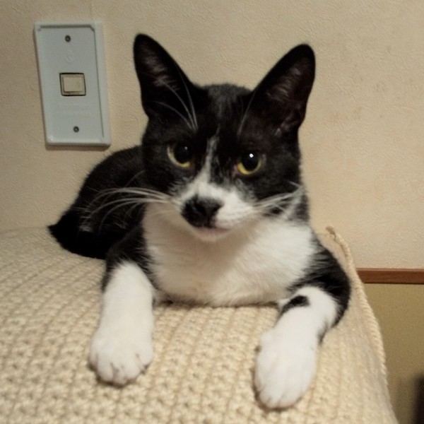 | 特徴(性格など) | 仮名:ノワール 性別:オス 毛色:白黒、マスク、タキシードにおひげ模様の愛嬌のある顔立ちです。 瞳の色:うす茶色 尻尾:長くて先が少しカーブしています。 性格・特徴:すっかり馴れて、なでて欲しい時には隣にピタッとくっついてきます。 が、プライベートモードに入っている時は構われるのが嫌なようで、手を押し返してきます。 非常に猫らしいツンデレです。 ベッドに入るとすぐに来て一緒に寝てくれます。 トイレ(鉱物系、システムトイレ)のしつけ済みです。 大人猫が大好きなので先住猫のいるお宅は大歓迎ですが、最初は人見知りが激しいため、仲のいい子と2匹ペアでの譲渡をお願いします。 |