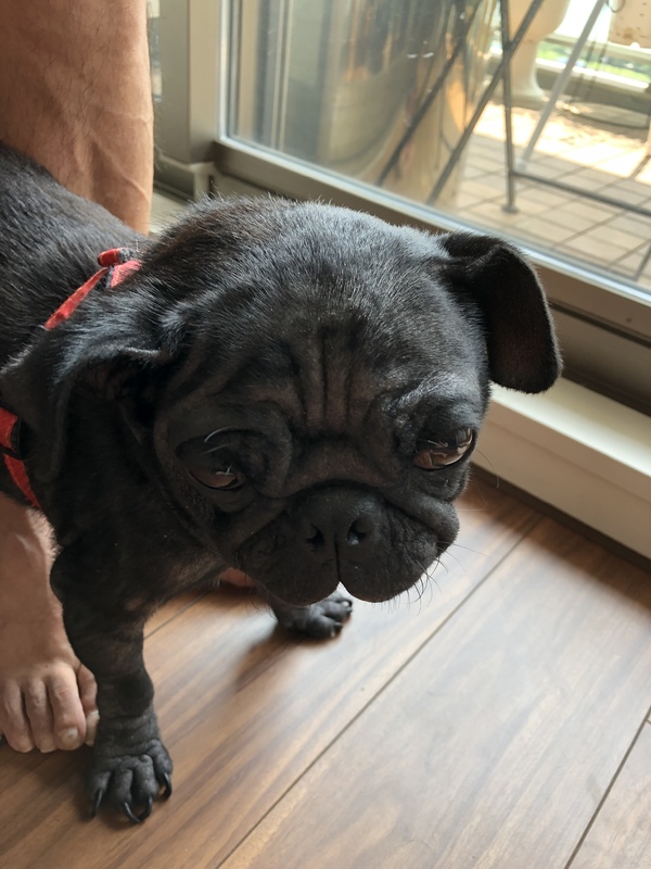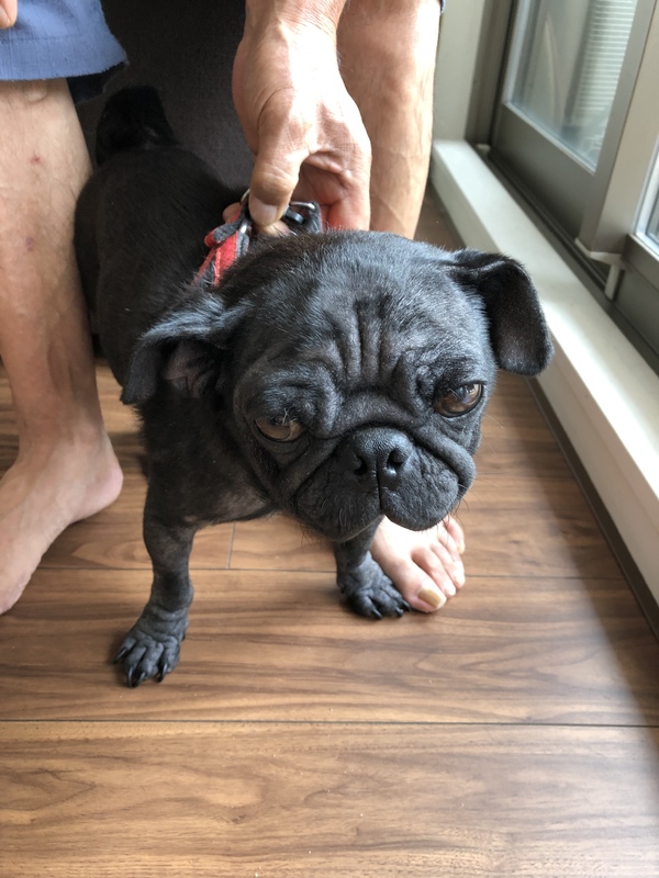 | 特徴(性格など) | 黒パグです。性格はオットリ、人間大好き、食べる事大好きでおとなしい性格です。 | ||