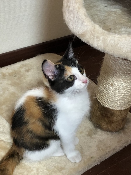 | 特徴(性格など) | 人懐こい三毛猫です。 とても元気で食欲旺盛。 猫エイズ、猫白血病共に陰性。 |