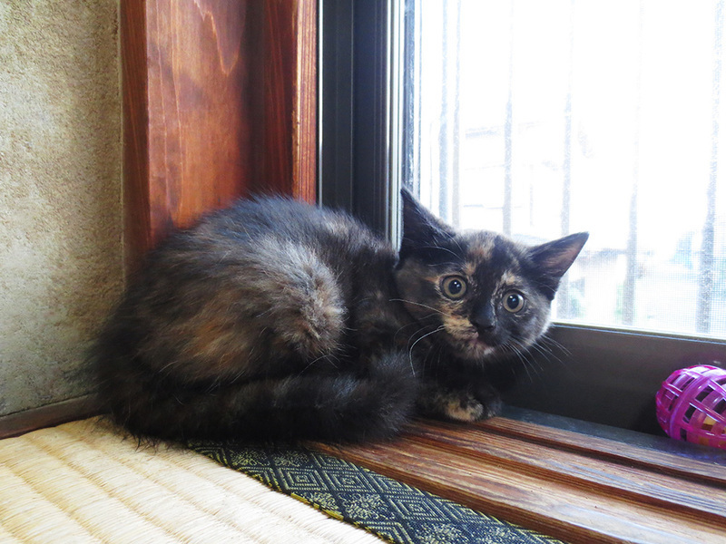 | 特徴(性格など) | 海外では幸運を呼ぶとされるサビ猫。とてもシャイで大人しい、可愛らしい女の仔です。慣れるまで逃げますが、抱っこや爪切りはさせてくれます。トイレ躾済。 【8月27日に避妊手術と1回目のワクチンの予定】 |