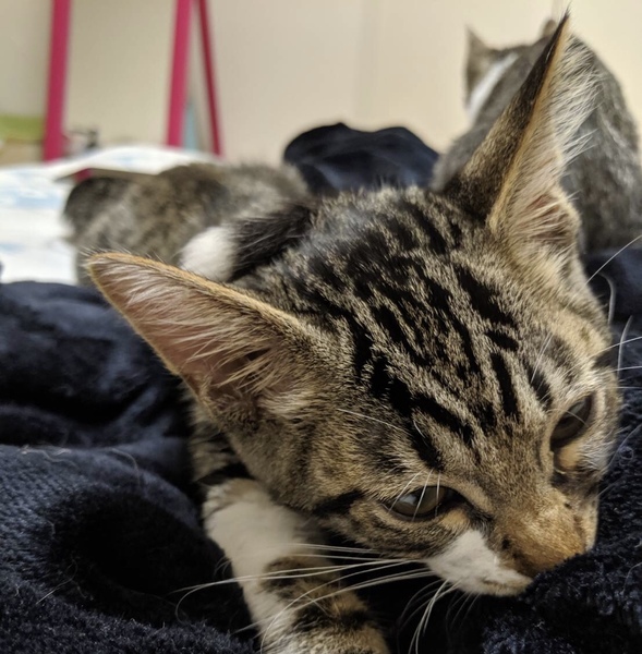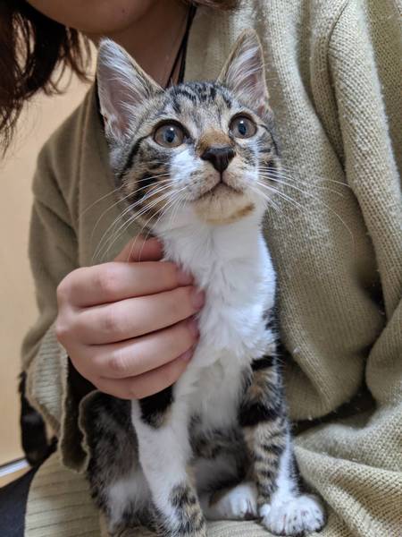 | 特徴(性格など) | 生後3ヶ月過ぎたくらいだと思われます。 トラ✖️白の男の子 とても甘えん坊で愛らしいです。 人間が大好きでじゃれて活発です。 カリカリももちろんもう食べられますし、トイレも完璧です。 |