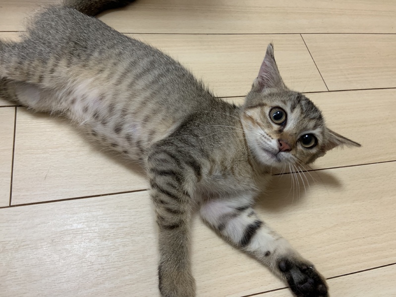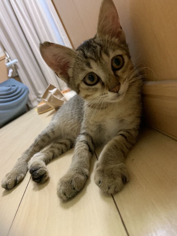 | 特徴(性格など) | キジトラ ♀ エイズ白血病 陰性 甘えん坊、人馴れ 猫馴れ問題なし やんちゃ盛りで愛嬌たっぷり 病院では大人しく我慢強いです |