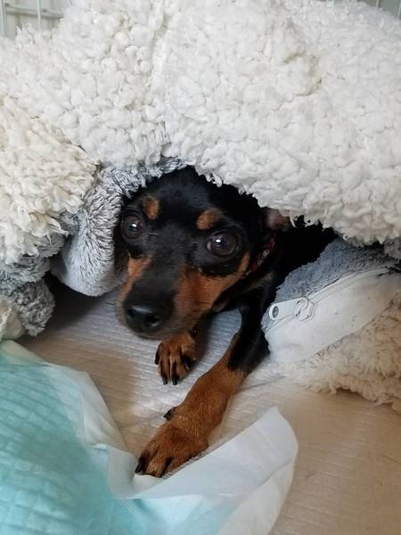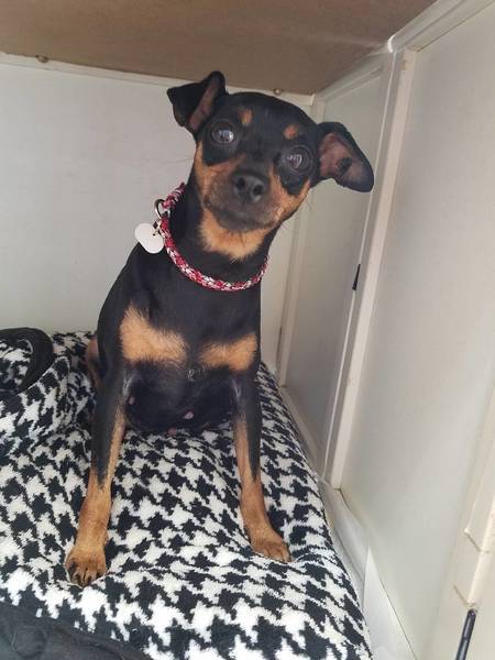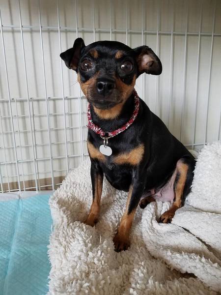 | 特徴(性格など) | ■特徴(仮の名前:ヨーヨ) ミニチュア ピンシャー 推定5歳~ 体重5.3kg ■性格・暮らし ・ビビりですが、甘える仕草が見られます。 ・トイレ、お散歩トレーニング中です。 ・他犬猫・対人に攻撃性見られません。 ・ケージでお留守番、就寝出来ます。 ■今までに行った医療行為 ・避妊手術 ・血液検査 ・歯石除去(抜歯) ・フィラリア抗原検査(-) ・混合ワクチン ・マイクロチップ装着 ・検便 ・耳ダニ検査(-) ・心雑音なし ・パテラ グレード3 (要経過観察) |