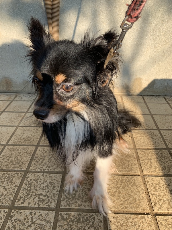 | 特徴(性格など) | 父がパピヨン、母がチワックスで、黒くてツヤのある毛質です。 性格はおとなしくて優しい子です。 |