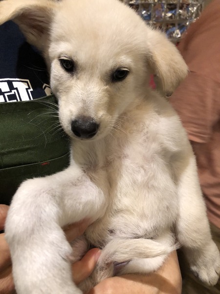 | 特徴(性格など) | 名前ーポピー 犬種ーMix 性別ーメス♀ 毛色ークリーム 年齢ー2〜3ヶ月くらい 体重ー3、6kg(成長中) 性格ーとても塩らしくシャイで控えめな子です。怖がりでちょっとビビリなところがあります。 顔を覗き込むと、パッと隠します。 まだ人との生活に慣れていないので、潜んで生活しているようです。大きな音も苦手みたいです。 それでもまだまだ赤ちゃんなので、甘えたい時があるようで、ものすごーーーく控えめにジリジリ寄ってきては、手の匂いを嗅いだり、ペロペロしてくれたりします。 余りにも余裕がなくなると脱糞しちゃうことがあります。便秘よりいいよね! トイレはうんちもおしっこもトイレシートの上でしてくれます。 サークルの中ではトイレシートの認識があるようです。 ご飯もよく食べます。今のうちは成長期なのでしっかり食べてもらっています。 吠えは今のところ一切ないです。 チャイムにも他の犬に蔦れて吠えることもないです。 |
