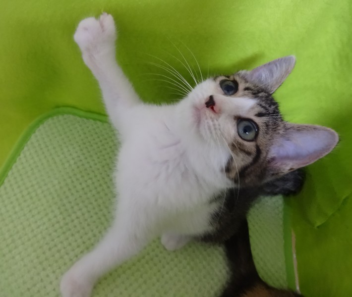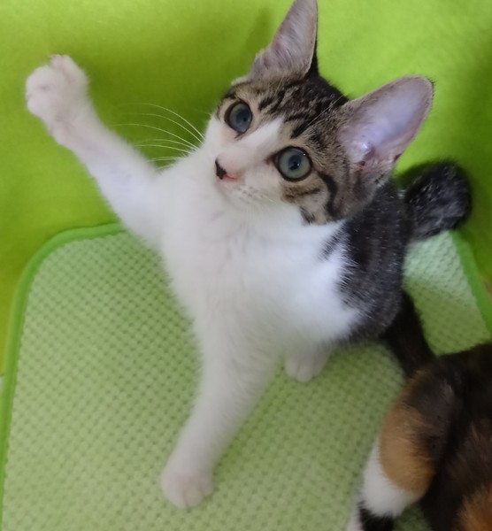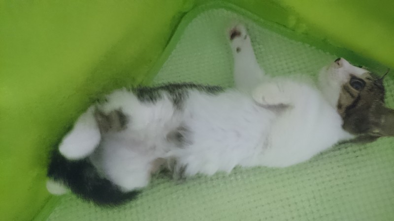| 特徴(性格など) | 【仮名】サッチーちゃん 【性格】控えめな感じの性格の女の子です。おもちゃもご飯も大好きですが、積極的すぎず、消極的すぎず、というような性格です☆美人さんです☆ 保護した当日から、リラックスして、エアコン涼し~ご飯おいし~わちゃわちゃ遊ぶ~いっぱい食べて、遊んで、スヤスヤ寝る、元気な子です。 |
