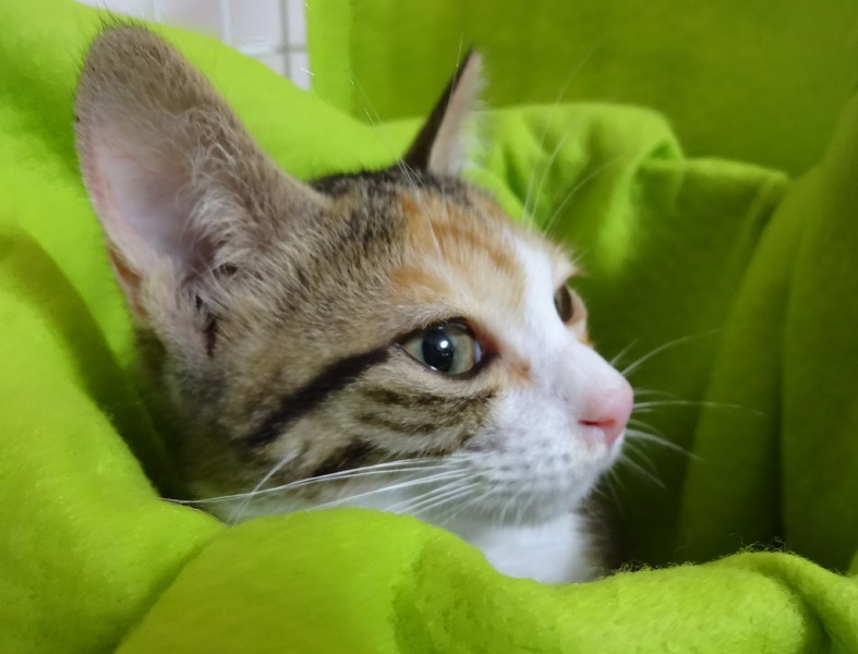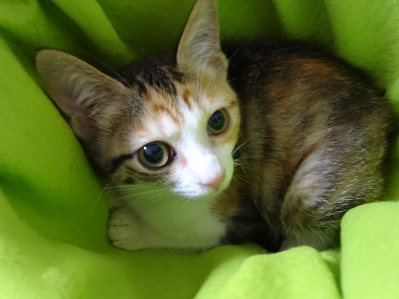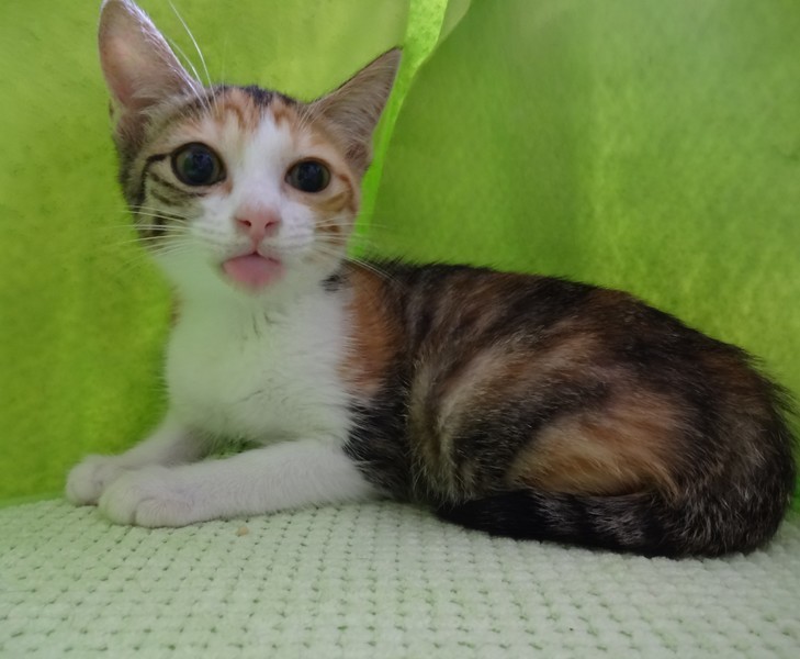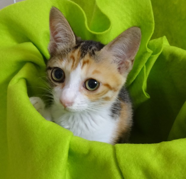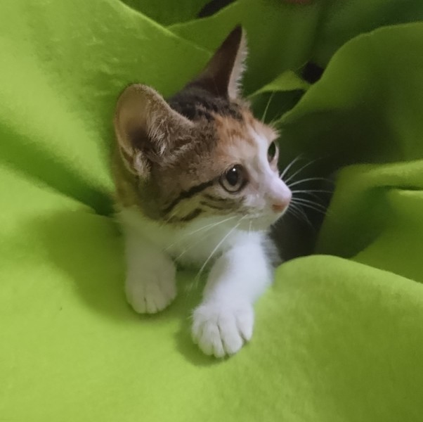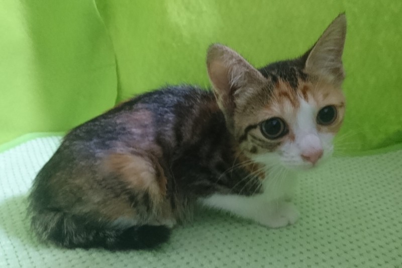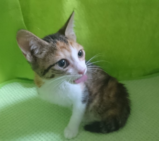 | 特徴(性格など) | 【仮名】ハッピーちゃん 【性格】挨拶のような感覚で可愛くシャーしてくれる仔です(^^;)三毛さんらしい、最初は警戒しつつ、段々と慣れてくる性格です。 シャー言う割には、保護した当日から、リラックスして、エアコン涼し~ご飯おいし~わちゃわちゃ遊ぶ~いっぱい食べて、遊んで、スヤスヤ寝る、元気な子です。おはようのシャーも忘れません(笑) |