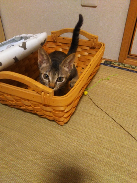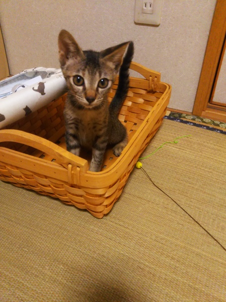 | 特徴(性格など) | キジ。よく食べてよく遊んでよく寝ます。トイレ躾済み。体重約1kg位。保護時は警戒していましたが、今はスリゴロちゃんです。甘えたです。ワンコと同じ部屋で暮らしています。本人はケージ内。 | ||
