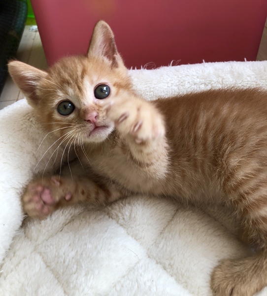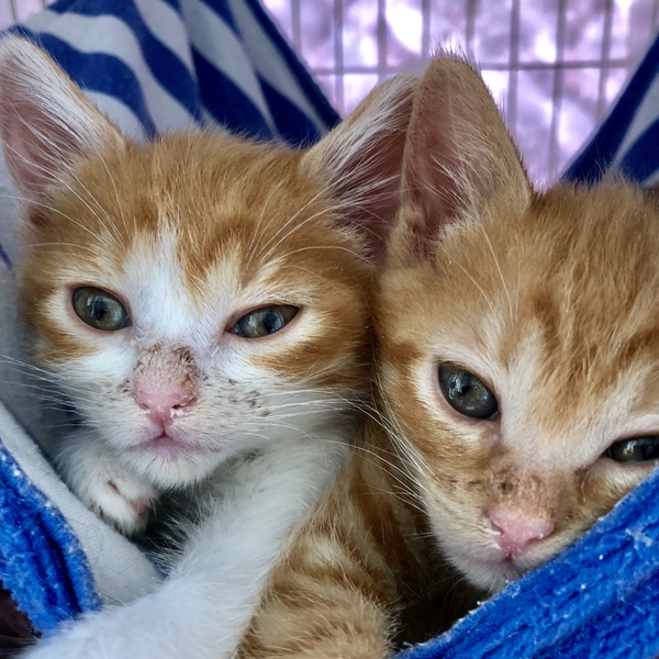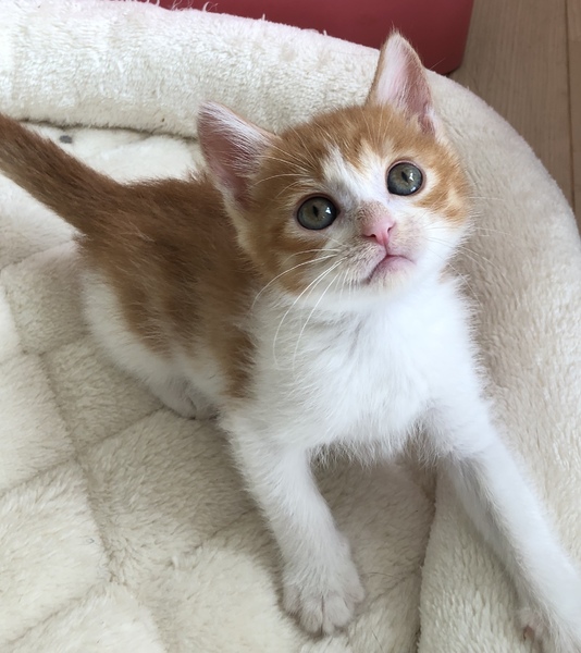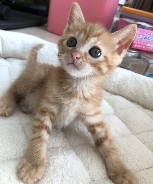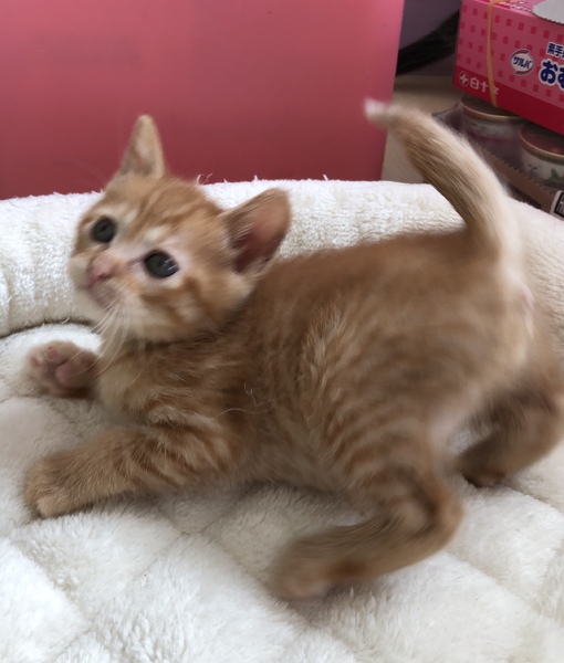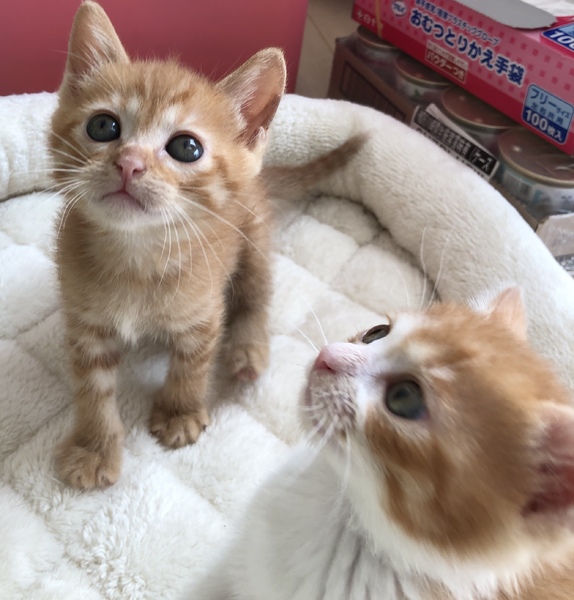 | 特徴(性格など) | 茶トラと茶白の姉妹です 丸顔で美猫です、尻尾は長くまっすぐです 推定6/3生まれ 300g台で生後3週間くらいで保護しました ミルクで育てたのでとにかく人が大好き、ご飯よりもまず甘えたがります。 茶トラ茶白のメスは珍しいです。 ※メスの子にありがちですが食に執着がないので偏食がちです。ドライをなかなか食べずウェットフードでお腹が緩くなりがちです。このためワクチン接種も2週ほど遅らせました。 ※この地域で猫が増えたきっかけが賃貸アパートに住む若い方が飼い猫を置き去りにしたことだったそうで20代の方、お住まいが賃貸の方、他に猫のいるご家族への譲渡は保護主の許可は難しいと思われます。 保護主それぞれに考えが違います。 |