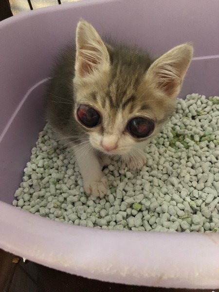 | 特徴(性格など) | キジ白 盲目です。生活面では、トイレや食事、歩行など、問題なくこなします。 性質は人懐っこく、とりわけ愛くるしい男の子です。 |