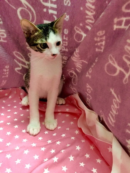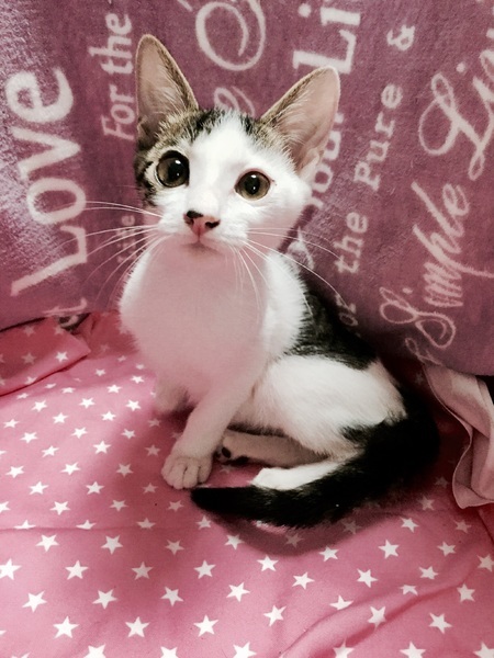 | 特徴(性格など) | 【仮名】ぐーちゃんくん 【性格】ぽや~んとしたお顔ですが、遊んでる時は別猫のように荒業を繰り出し、相手をギブまで持込みます。お姉さんのケティやストーリアとはいつもじゃれ合ってます。 1人だと寂しくて泣いちゃうので、同世代のにゃんことのお迎えを希望します。 先住ちゃんがいる場合は1匹OKです。 |