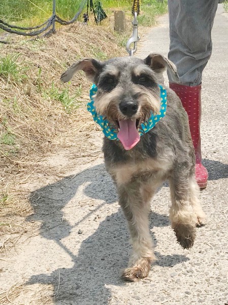 | 特徴(性格など) | 7キログラムのかわいいシュナウザーの男の子です。散歩も大好きです。 元気いっぱいです。 他の犬とも仲良く過ごしていて、フレンドリーな性格をしています。 見つめてくる瞳がとってもかわいいです。 どうか、あきらくんに、会いにきてください。 |