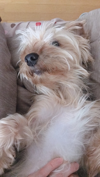 | 特徴(性格など) | テリア系で、シルキーテリアという犬種、色はスチールブルータン です。 人懐っこくて、活発、甘えん坊です。 |