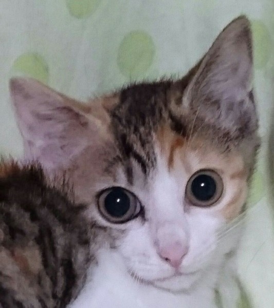| 特徴(性格など) | 【仮名】不二子ちゃん 【性格】キュートなしましま模様の三毛猫。 すこしひと見知りをしますが、抱っこできます。 三姉妹でじゃれたりして遊ぶことが大好きです。 同世代の猫とのお迎えを希望します。 |