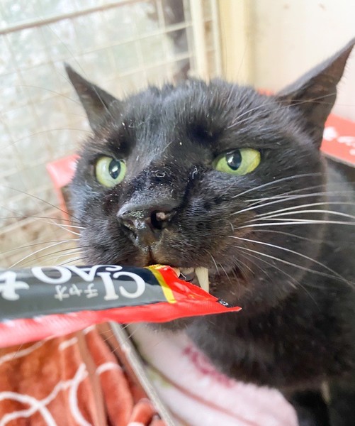 | 特徴(性格など) | 大きな身体で、とっても甘えん坊の「太郎」くん♡ お鼻に少し傷跡?あり、抱っこ大好き♡構って貰うの大好き♡男子です。 エイズ陽性ですが、現在体重6kの巨漢で、元気いっぱい♡発症の兆候なし♪ 現在、ドライフードを置き餌として、缶詰など一日1回、おやつ代わりとして与えています。 |