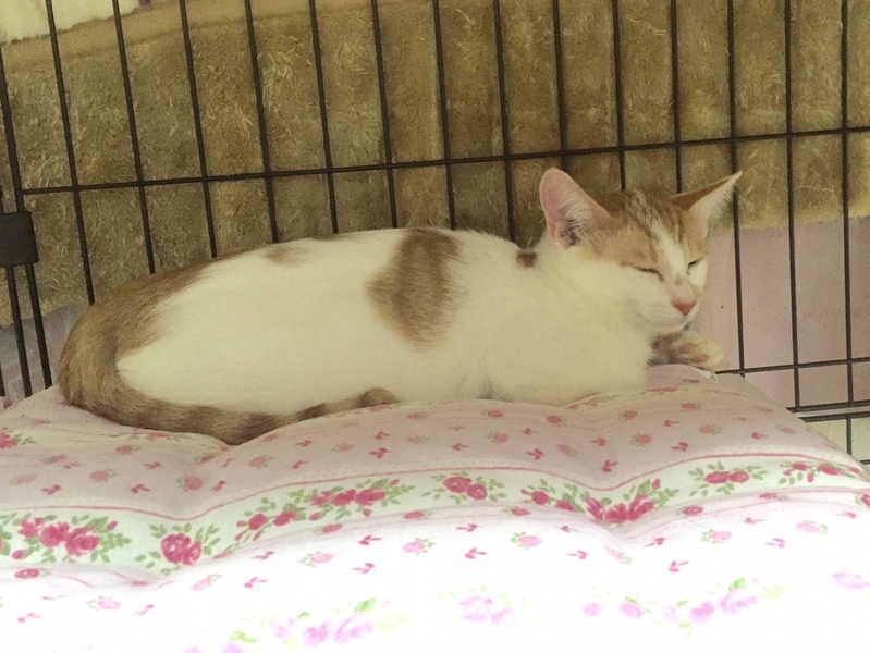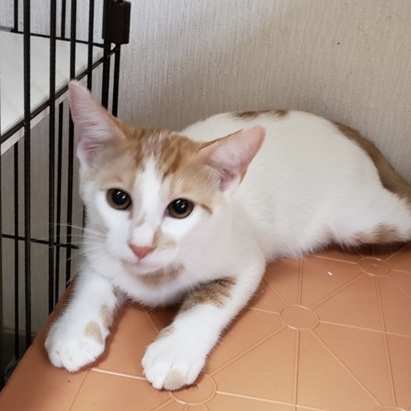 | 特徴(性格など) | 推定生年月日:2019年4月ごろ 色柄:茶白 しっぽ:長くてまっすぐ 4兄妹で唯一の茶白男子。 家猫修行中ではありますが、これからどんどん人が好きになってくれる月齢です! 遠慮しながらもおもちゃに興味津々です! ☆不妊去勢手術済 ☆ワクチン済 ☆ノミダニ取り済 ☆駆虫済 ☆マイクロチップ挿入済 ☆トイレしつけ済 ☆ウイルス検査 エイズ 陰性、白血病 陰性 |