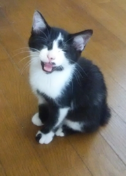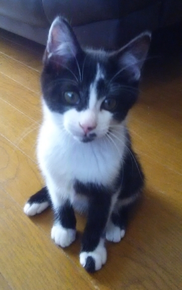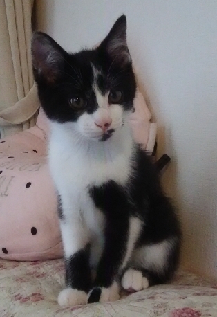 | 特徴(性格など) | 幸運を呼ぶ短い鍵しっぽ♡ 個性的な白黒柄でオリジナリティーに満ちてます(笑) 決して見間違える事のない柄でかわいい! トイレの失敗もゼロ、性格的にも飼いやすい子です。 ものおじせず人が大好き! 初対面の人にもミーミー鳴いてゴロゴロ甘えて来ます^^ 側に寄って鳴いて甘えて甘えてしょうがないから抱っこすればスヤスヤゴロゴロ♪ 甘えん坊ファンにはたまらない超絶胸キュン男の子です! |