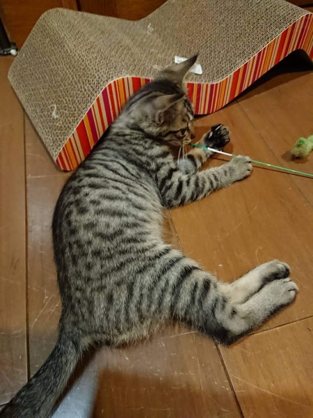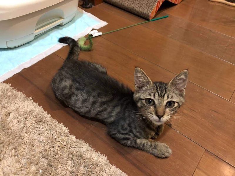 | 特徴(性格など) | 遊んでもらうのが好き、甘えん坊のキジトラ柄のミックスくんです。 しっぽは長めだと思います。 フードもモリモリとよく食べます。 3種ワクチン一回目終了 猫エイズ、白血病共に陰性 フロントライン済 検便異常なし |