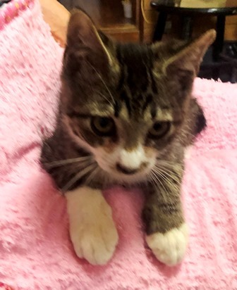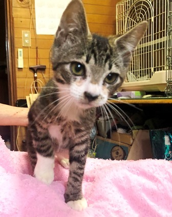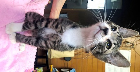 | 特徴(性格など) | 口のまわり、足の先が白い、きれいなサバ白です。 しっぽはまん丸の鍵しっぽです。 馴れていて、抱っこもできます。トイレもご飯も自分でできます。 活発でよく遊びます。 |