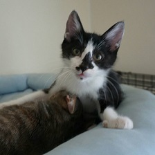 | 特徴(性格など) | 推定生年月日:2019年5月20日頃 毛色:黒白ハチワレ? しっぽ:長めの鍵しっぽ 白猫と黒白猫の兄弟姉妹のうちの1頭。 兄弟姉妹の中で一番小振りですが、一番の甘えん坊! 目が合うと可愛い声でアピールしてくれます。 よく食べよく遊び元気いっぱい! 兄弟や仲良しの子と一緒のお迎え、先住さんがいるご家庭も大歓迎です! ☆不妊去勢手術済 ☆ワクチン2回済 ☆ノミダニ取り済 ☆駆虫済 ☆マイクロチップ挿入済 ☆トイレしつけ済 ☆ウイルス検査 エイズ 陰性、白血病 陰性 |