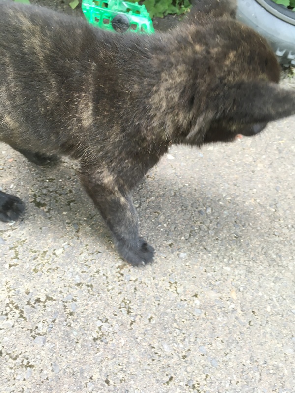 | 特徴(性格など) | 黒虎の子犬です。 犬種に詳しくありませんが外見の特徴で甲斐犬のような感じがします。 目がくりくりでかわいいです。 人懐っこい性格で、初めて出会ったときも犬の方から近寄ってきました。 車のエンジン音がすると逃げます。 |
