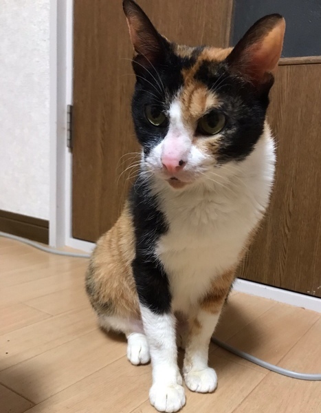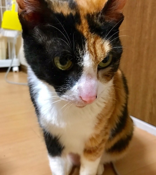 | 特徴(性格など) | 三毛猫--尻尾短い ご飯よりも人間が好きって思える程人好きで、穏やかな性格なので、初めて猫と一緒に生活する方にも最適な子です。 |