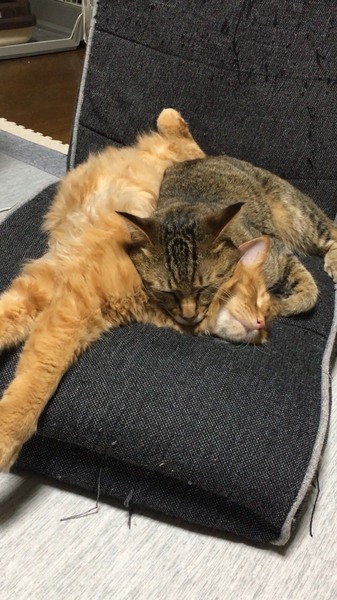 | 特徴(性格など) | キジトラのネコはオスです。 約4、5キロです。 やんちゃでキャットタワーやねこじゃらしでよく遊んでいます。 茶色のネコはメスです。 約4、5キロです。 とても人懐っこく、誰にでもゴロゴロと言いながら近づいていきます。 ずっとぴったりくっついてきます。 二匹ともに、不妊虚勢手術とワクチン接種済みです。 |