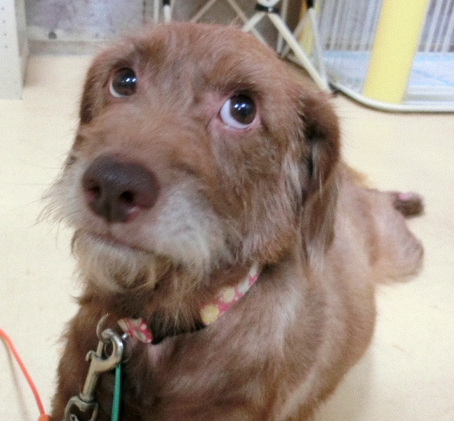 | 特徴(性格など) | MIXの『ボンジュール』です。 (ちばわんHP掲載番号No.3947)←申込時は必ず犬の名前とこの番号を記載してください。 【毛色】茶 【体重】12.5kg 【人馴】問題なし 【状態】狂犬病予防接種済、ワクチン接種済、ノミ・ダニ駆除済、検便(-)、フィラリア(-)、マイクロチップ装着済、脱毛・湿疹有 【性格・その他】 とても人懐こくて元気な男の子です。 人と目が合うとオモチャやシーツをくわえて持ってきて、投げると取ってきて渡します。 人が離れると寂しくて、ひとしきり鳴く時もありますが、あきらめは早く長鳴きしません。 捕獲時から皮膚の状態が悪く所々脱毛があります。マラセチア+アレルギーと診断されましたが、人や他犬に移る心配はありません。現在は週1-2回の薬用シャンプーと保湿クリームをつけて治療しています。かなり回復しましたが、引き続ききめ細かいケアをする必要があります。 他犬には興味津々です。上手く接する事ができない時もありますが、数回会って顔見知りになった犬とは並んで散歩もいけるようになりました。 散歩は大好きで、引きは少し強いですが大分上手に歩けるようになりました。散歩時は、ダメだと言えば他犬にからむ事はありません。 お留守番は室内フリーで上手に出来ます。いたずらもほとんどしません。 トイレは外派で、朝晩2回の散歩で済ませていますが、シャンプーをした後や興奮した後はオシッコがしたくなるので昼間もう1度行きます。現在室内でできるよう練習中です。 にぎやかな環境には適応出来ると思いますが、小さなお子さんよりも高校生以上くらいのお子さんのいるご家庭の方が向いています。 引き続き完全室内飼育で、定期的なワクチン接種やフィラリアの治療と予防などの健康管理、脱走・逸走には細心の注意をお約束いただける関東圏内のご家庭で、終生家族の一員として大切にしていただける方からのお問い合わせを心よりお待ちしています。 申し訳ありませんが、主にお世話をされるのが高齢の方のご家庭である場合はお断りさせていただきますので、予めご了承ください。 【預かり場所】神奈川県川崎市 【日記】Hokey Pokey http://blog.livedoor.jp/hokipoki/archives/19276129.html |