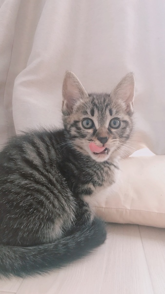 | 特徴(性格など) | ●サバトラ(オス) 元気いっぱいで好奇心旺盛です。 ●茶トラ(オス) マイペースでおっとりした性格です。 |