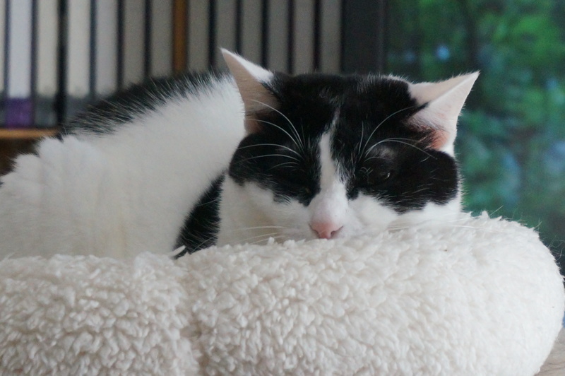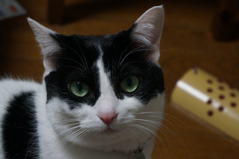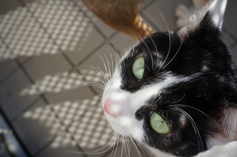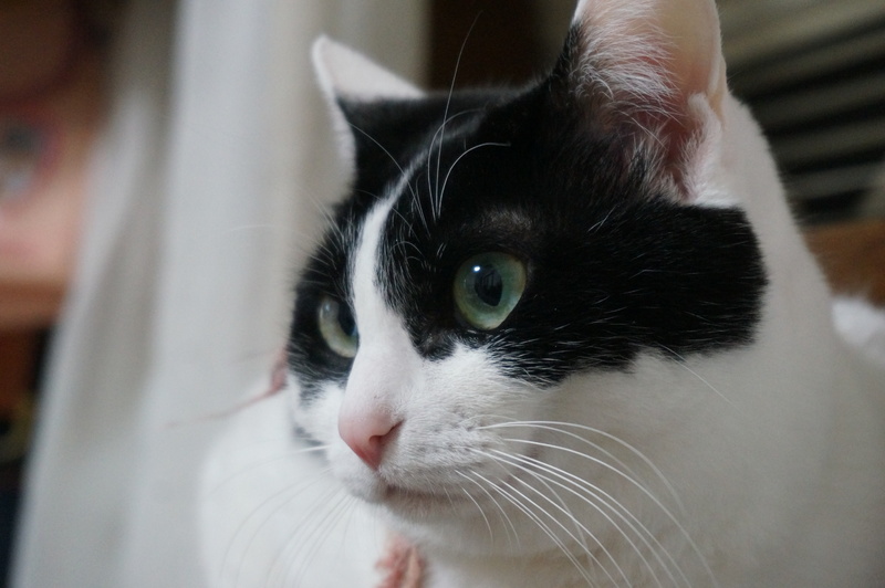 | 特徴(性格など) | 2015年4月20日前後生まれの白黒ハチワレ(♀)です。性格は、臆病で警戒心が強く、宅配業者などの来客があると隠れてしまいます。ベタベタと甘えるタイプではなく構ってほしい時に近づいてくるタイプなので、人がグイグイ近づくと逃げてしまいます。同居の猫や犬とは仲良くしています。お転婆な面もあり、高いところに上るのが好きです。お尻をトントンされるのが大好きです。 | ||
