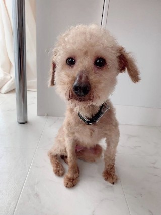 | 特徴(性格など) | ■特徴(仮の名前:マッシュ) トイプードル♂ 推定3~5歳 体重4.3キロ ■性格・暮らし ・人が大好きで甘えん坊です。 ・体のどこを触っても問題ありません。 ・トイレシートの認識があるようですがトレーニング中です。 ・ケージインでの留守番ができ、無駄吠えはほとんどありません。 ・対犬への攻撃性はみられません。 ・トイプードルの習性を知り必要なしつけができる方が望ましいと思います。 ■今までに行った医療行為 ・去勢手術 ・検便 ・血液検査 ・フィラリア検査(-) ・歯石除去 |