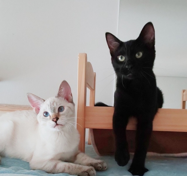 | 特徴(性格など) | メス:シャム風といいますか耳先や尻尾、手足がサバ柄の入ったシールポイントです。 オス:黒猫 とても人に懐いていて生後5カ月半で体調も落ち着いているので初心者の方でも飼いやすいと思います。 |