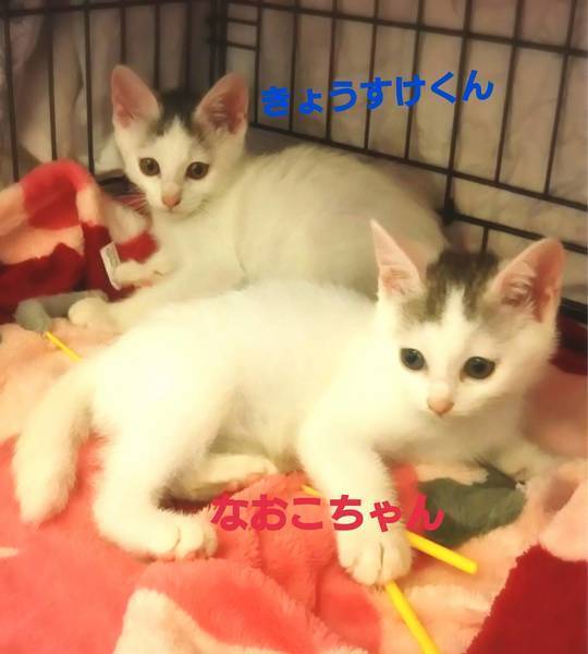 | 特徴(性格など) | 8月18日(日)11:00~16:00(最終申込15:30) ねこざんまい譲渡会に参加予定です! 《会場のご案内はこちら》 https://ameblo.jp/neko3mai/entry-12502643082.html 希望の猫ちゃんがいる場合は、11時に会場へお越し下さい。 先着順ではございませんが、同じ猫ちゃんに複数名のご希望者さまがいらっしゃる場合は、11時半でお見合い受付を締め切らせていただく場合がございます。 ※15時以降、お申込み終了の猫ちゃんもいますので、どうぞご注意下さい! ※譲渡会ご来場につきまして、事前予約は不要です どうぞご家族みなさまでご来場下さい ★★★ご来場前に必ずご確認下さい★★★ 《里親様へお願いはこちら》 http://www.neko3mai.com/condition/condition.html 《家族募集中猫ちゃん一覧はこちら》 http://www.neko3mai.com/entrycats/entrycats.html ◆ 名 前 ◆ きょうすけくん ◆ 年 齢 ◆ 3ヶ月~3ヶ月半 ◆ 性 別 ◆ 男の子 ◆性格は?◆ とっても人馴れしている男の子です。 抱っこをするとゴロゴロと言って甘えてきては、顔をのぞくように見つめてきます。 のんびりとした性格が、なんとも言えないくらい可愛いです♡ 仲良し兄妹のなおこちゃんと一緒にお迎えいただけるご家庭を希望しています。 ●なおこちゃん https://satoya-boshu.net/foster/detail.php?@DB_ID@=299033 ペットではなく、共に暮す家族の一員としてお迎えくださるお家を希望しております。 お世話してくださるご家族皆さん、またはご夫婦ご一緒に会いにいらしてください←重要 |