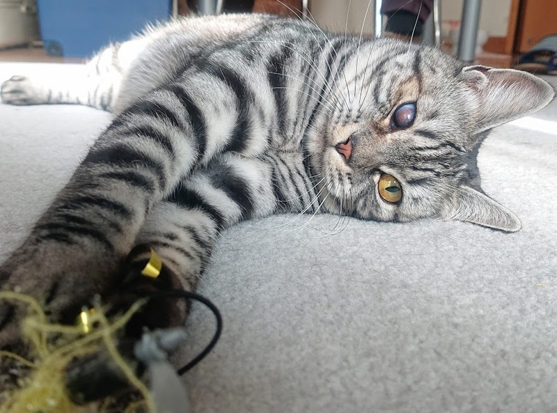 | 特徴(性格など) | 2/4画像を差し替えました! とっても良好です!ドライフードもウェットフードも好き嫌いなし ウイルス検査陰性 便検査・避妊手術・ワクチン済 なっちゃんは過去に適切な治療が受けられなかった為、右目が萎縮しており見えていません。 乾燥防止に眼軟膏又は目薬を処方してもらっています。 両目見えている猫と比べて、多少視界が狭いくらいで日常生活に支障はありません。 じゃらしを追いかけて走り回り、キャットポールにも登ります。 特徴など アメショmixとのことですが詳細は不明です。 キレイなくっきり模様のサバトラ女子です! 7/23生まれ 人馴れ抜群!抱っこなでなでOK! 何処を触っても怒りません。 ブラッシング、爪切り、眼軟膏、水薬、上手にさせてくれます。 人が大好きでスリスリしてくれます。 全猫飼いの憧れ、添い寝もしてくれます…! 猫じゃらし、上手に遊ぶようになりました。 前保護宅にはお子さんもわんこも一緒に暮らしていたそうです。 相性次第ですが、他の猫も大丈夫です。 現在我が家の先住4匹と仲良く生活しています! 保護当時、飢えを感じるほど食欲が旺盛でした。 我が家での生活である程度満足したのか、以前のようながっつきは無くなりました。 カリカリ丸呑みが、ちゃんと噛み砕くようになりました。 ものすごい早食いも落ち着きました。 …が、その代償にムッチリボディを手に入れました。 様子を見ながらローカロリーなフードに切り替えて行く予定です。 |