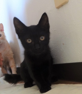 | 特徴(性格など) | 写真では分かりずらいですが うすい縞の入った黒猫スモークです。 黒猫らしいマイペースでのんびりした性格です。 おもちゃでよく遊び、元気です。 食事:ドライフード トイレ:失敗なし 爪切り:できます エイズ・白血病:陰性 |