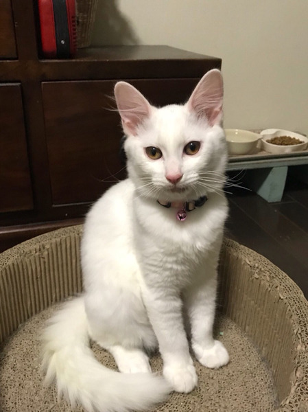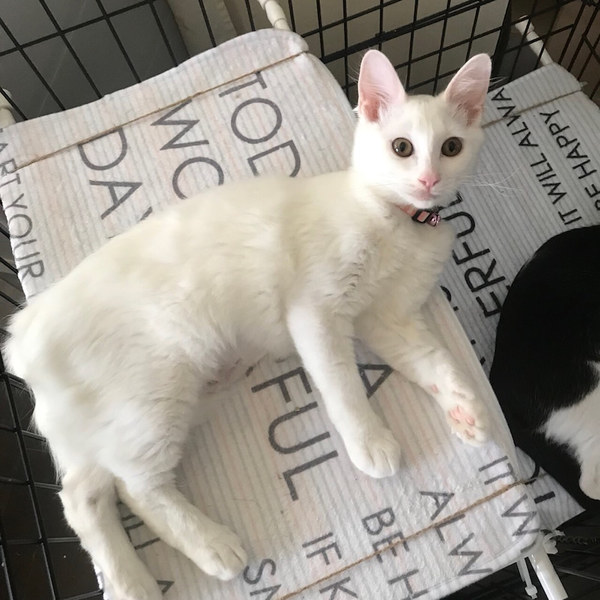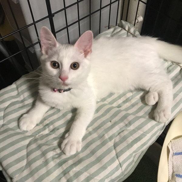 | 特徴(性格など) | あたちは、ユッキーよ 雪のようにまっ白いカラダが素敵でしょ? でも、実は、アタチ、真っ白ではにゃいのよ。 すこーし、頭に柄があるわ。 同じキョウダイのマッキーくんと大の仲良しにゃの。 できれば一緒に迎えてくれたら、アタチは、とってもとっても嬉しいにゃ キョウダイ共々、よろちくおねがいしまーす ---------------------------------------------------------- 綺麗な白猫の美猫ちゃん、ユッキーちゃんのご紹介です。 全体が真っ白に思われますが、よく見ると頭あたりに、模様が少しあります。 性格もよく、飼いやすい子です。 他の猫ちゃんとのコミュニケーションも抜群であり、特に同じキョウダイのマッキーくんとは、大の仲良しです。 とても仲良しキョウダイですので、キョウダイ一緒に迎えてくださる方を優先したいと考えております。 ケージ生活にも慣らしてあります。 先ずは、ケージからスタートしていただき、直ぐにフリーになって遊び回ると思います! 飼いやすい子ですので、猫飼い初心者の方にもオススメできます。 避妊手術済みですので、お仕事をお持ちのご家庭は、譲渡会スタッフまで、ご相談ください。 そんなに長い時間のお留守でなければ、一日お仕事をお持ちの方でも問題ありません。 お子さんもOKです! お子さんがいらっしゃるご家庭は、必ず、アレルギー検査をおねがいします。 とてもかわいいユッキーちゃんです。 そして、同じくキョウダイのマッキーくんも、抜群にかわいいです。 ぜひ、キョウダイ一緒に家族に迎えてくださいませんか? よろしくお願い申し上げます。 |