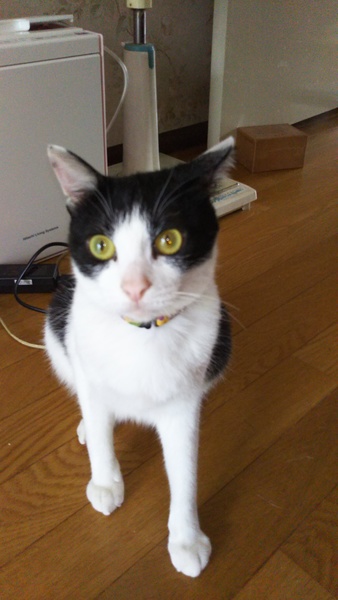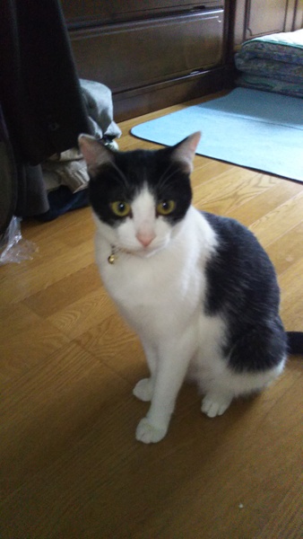 | 特徴(性格など) | 白黒のブチ、猫じゃらしで遊んで欲しくて傍によって来ます。非常に警戒心が強くなかなか捕まりません。 | ||