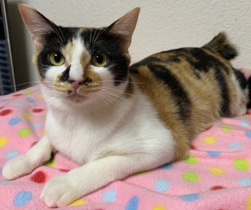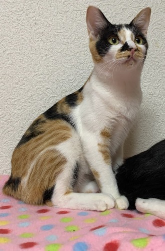 | 特徴(性格など) | 【仮名】わんたんちゃん 【性格】正統派ミケちゃんとはチョット違う個性的なわんたんちゃん♪ このタイプのコは好きな人にはたまらないにゃん子なんです♪ らんらん&てんしんよりも控えめなアピールで甘えてきます。 パソコンを触っていると画面にスリスリしてナデナデして~❤と訴えます。 撫でてあげると嬉しくて目がだんだんまん丸になり、より一層カワイイ見た目はお世辞にもカワイイ表情に変化していきます。 毎日、お友達と走り回って運動会していますので、できれば一緒に過ごしている子か同世代のお友達がいるオウチを希望します。 |