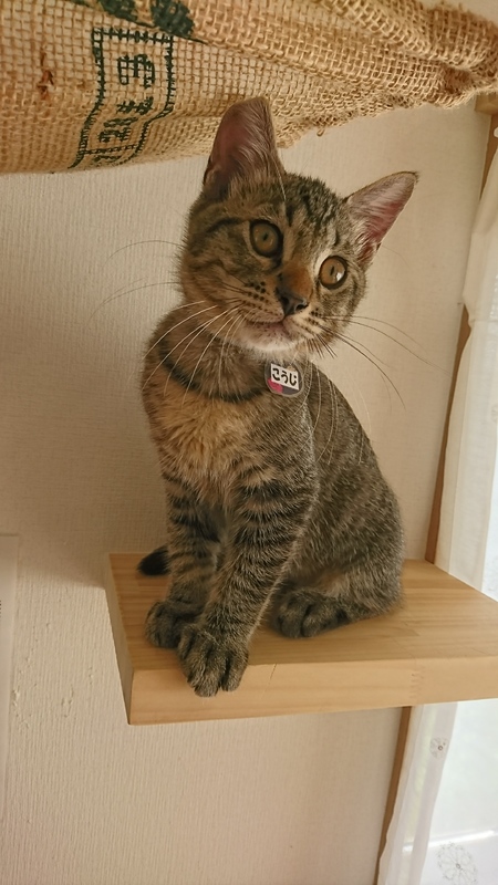 | 特徴(性格など) | 焦げ茶きじとら 手が大きく体格も大きめ。 人が大好き、遊ぶのが大好きなのでお子様がいるご家庭がオススメです。 |