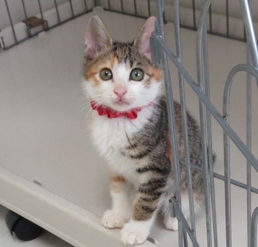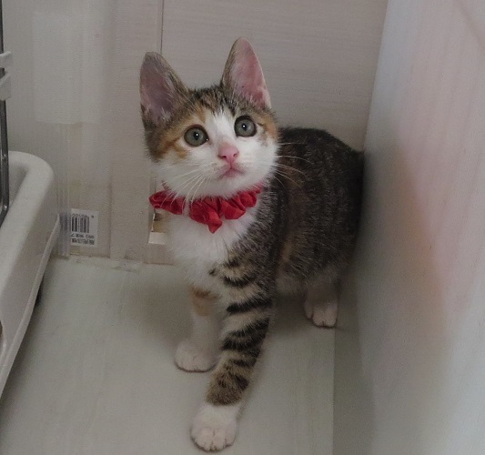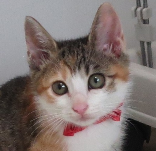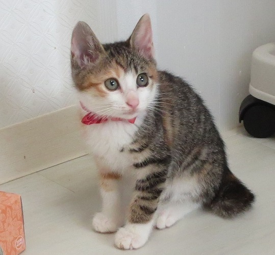 | 特徴(性格など) | 保護して日が浅かった時は怖がりで修行の身でしたが、それも終了しました! 遊びとなると大変に積極的な子で、そして大変に美人さんです! 普通の子より耳がピンと上に立っている感じがして、耳の間がやや狭めなのでしょうか?、それで『うさぎちゃん』です(笑) 強かったり、甘えたり、とても三毛らしい美少女さんです。 |