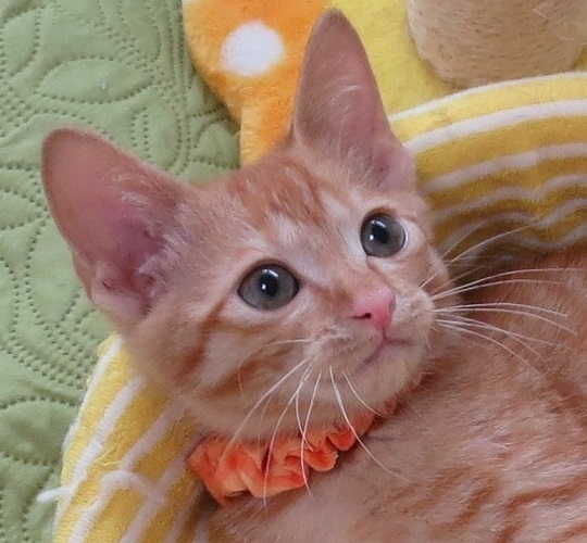| 特徴(性格など) | 三毛のうさぎちゃんと兄妹です。 保護してまだ日が浅いので修行中の身なのですが、穏やかな性格のとても良い子です。 気が小さくて怖がりかと思いましたが、のんびりしているのかなあと感じたり、面白いです。 茶トラの男の子らしい、大らかな可愛さを感じる可愛い子です! |