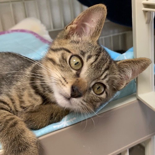 | 里親募集する理由 | 豊島区の某駅前美容院に別の猫さんを捕獲に行った時に突然ぴょこっと現れました。 かなり小さく、また周りに母猫や兄弟猫の姿もなかったので保護しました。 |